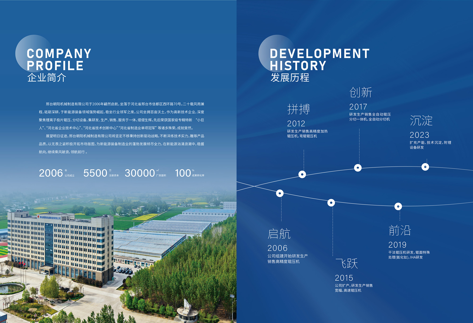 邢臺朝陽機械制造有限公司是新能源裝備領(lǐng)域的璀璨之星,位于河北省邢臺市信都區(qū)會寧鎮(zhèn)(邢臺會寧綜合物流聚集地) 70 號,自2006 年成立以來,歷經(jīng) 20 年砥礪奮進,已成長為新能源裝備領(lǐng)域的行業(yè)領(lǐng)軍者。公司占地 100 余畝,是集鋰離子電池極片... [更多>>]